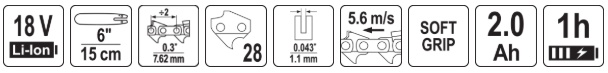 efficient 18 V Li-Ion battery power system provides stable power and freedom of work without a cable, with no exhaust emissions and low noise levels allowing comfortable use even in a home garden