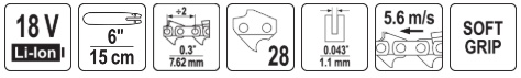 precise cutting system with a 6" (158.5 mm) guide bar enables precise cutting of branches and thin trunks, ensuring clean, controlled cuts and less motor load
