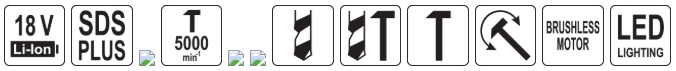 The design based on an 18 V Li-Ion battery power offers total mobility, long operating time, and stability and continuity of work thanks to fast charging. The SDS-plus handle allows for quick accessory changes, and the built-in LED lighting makes work easier, especially in installation shafts and poorly lit rooms. The set includes an additional handle and a depth limiter, increasing control and accuracy during drilling. The low weight makes working overhead or in forced positions less tiring.
