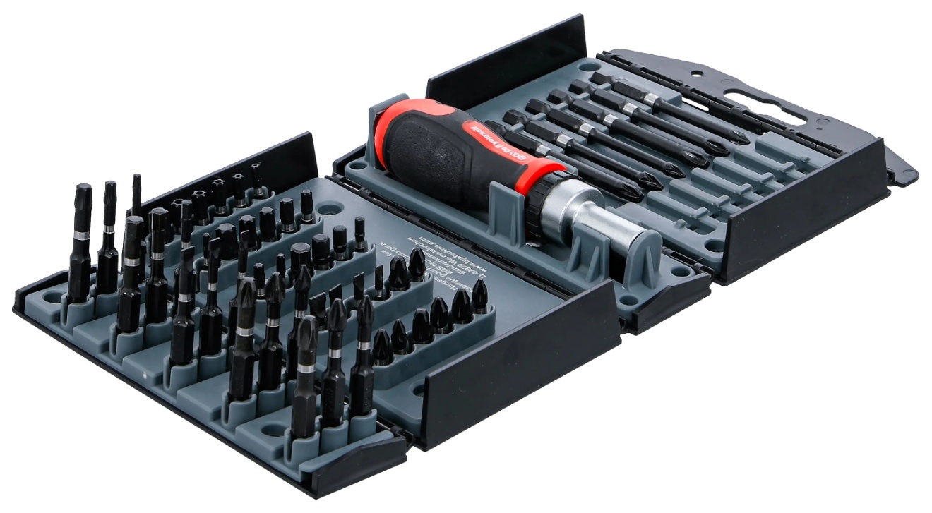 with 3-stage ratchet function, switchable right/left or lockable in middle position for use as normal screwdriver
