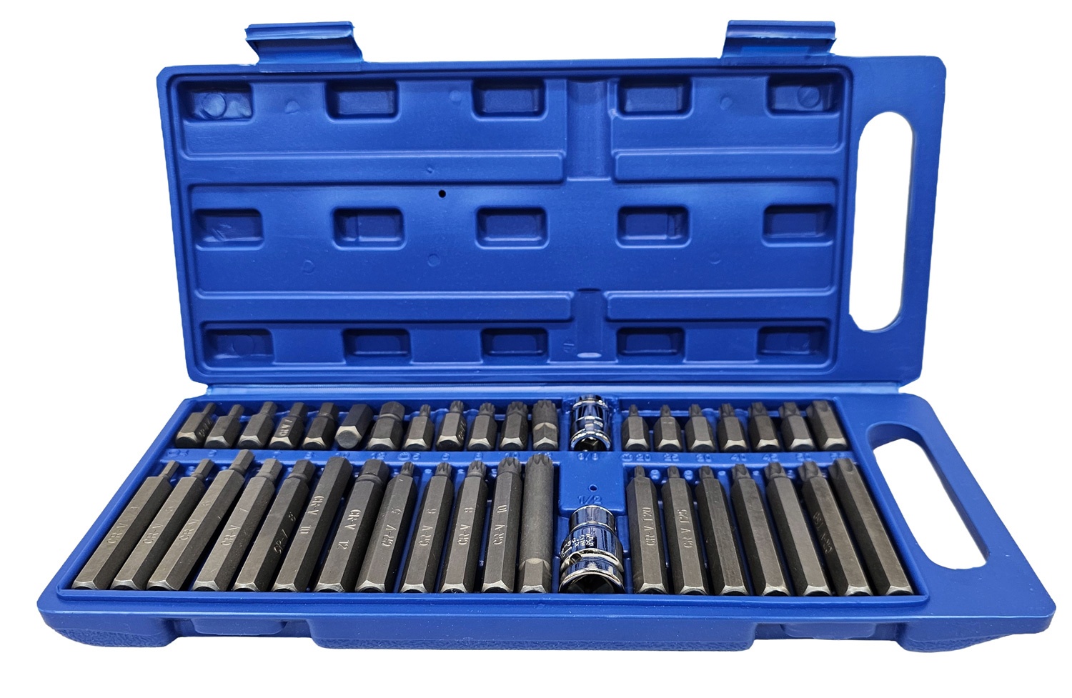 Key set for unscrewing special screws: hex, torx, spline. Made of chromium-vanadium steel Crv. Variety of bits provides the possibility to perform many works in mechanical and automotive services. Hooks fixed in a 10mm hex handle, adapted for use with 1/2 "and 3/8" ratchet.