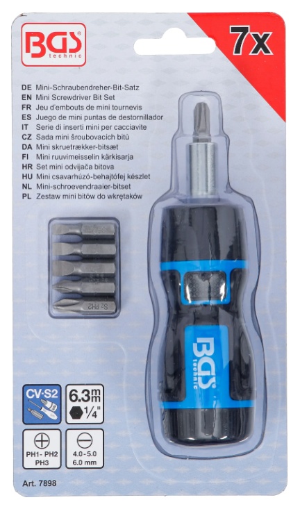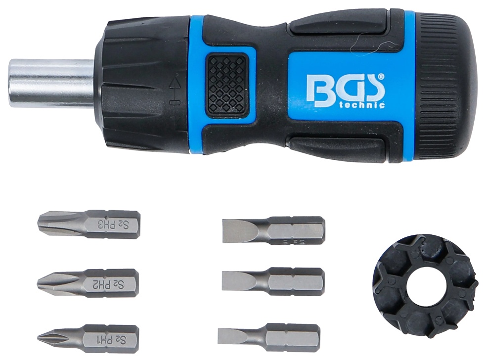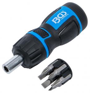 with 3-stage ratchet function, switchable right/left or lockable in middle position for use as normal screwdriver