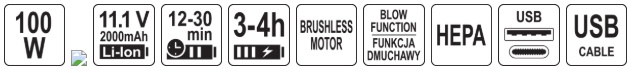vacuum cleaner, blower nozzle, Blower brush, crevice nozzle, wide nozzle, hoover brush, pumping nozzle, charging cable