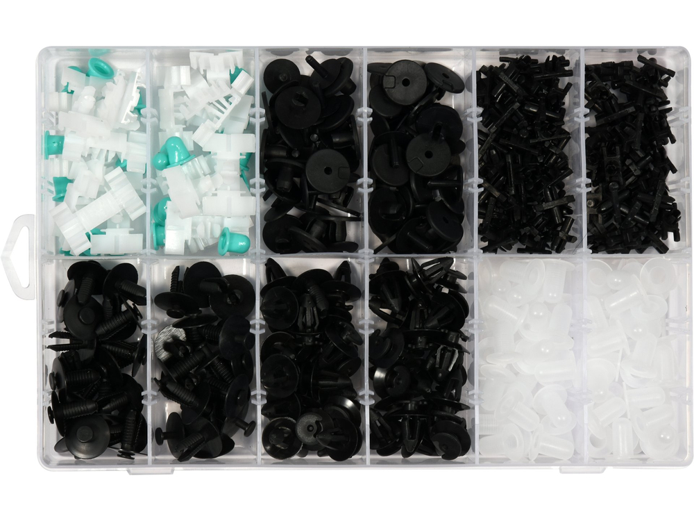 Gamintojas:  TRIM CLIPS ASSORTMENT FOR BMW 290 PCS, CONTAINS: 10 PCS FIXED CLIPS (151.1457), 35 PCS LOCATOR (151.1597), 70 PCS WINDSHIELD HOLDER (151.1596), 40 PCS LOCATOR (151.1612), 35 PCS DOOR CLIPS (151.1968), 100 PCS NUTS (151.1011)