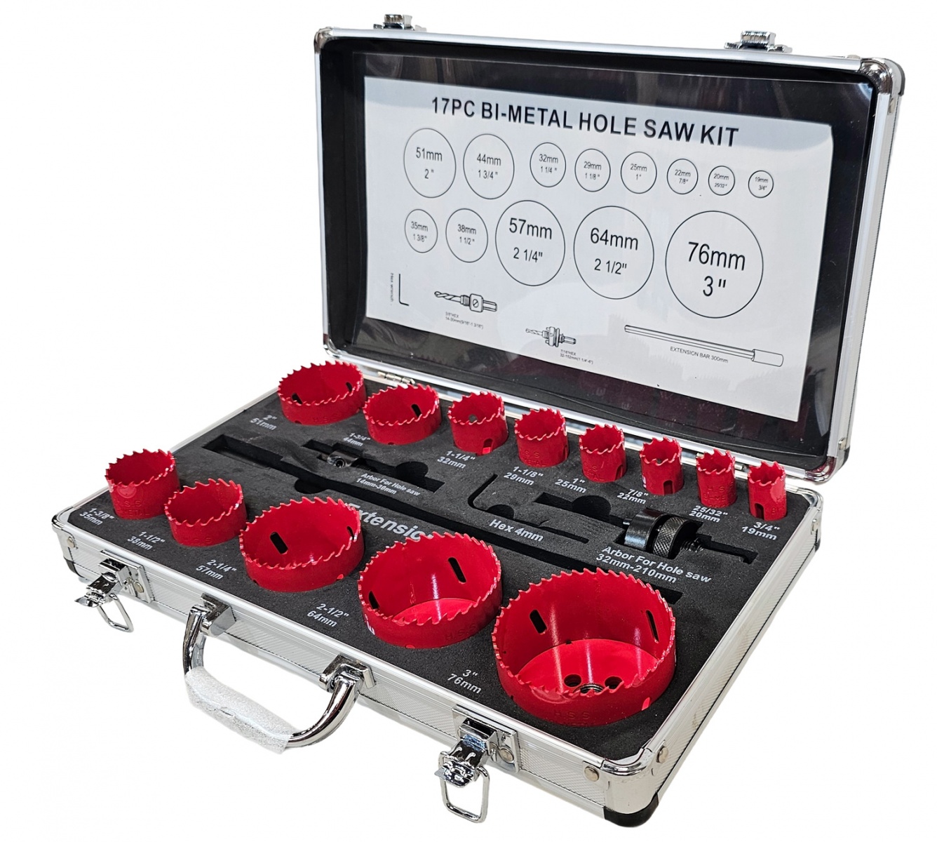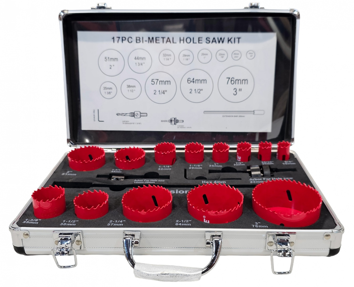 Bi-Metal HOLESAW KIT 17 PCS HSS STEEL IN ALUMINIUM CASE
