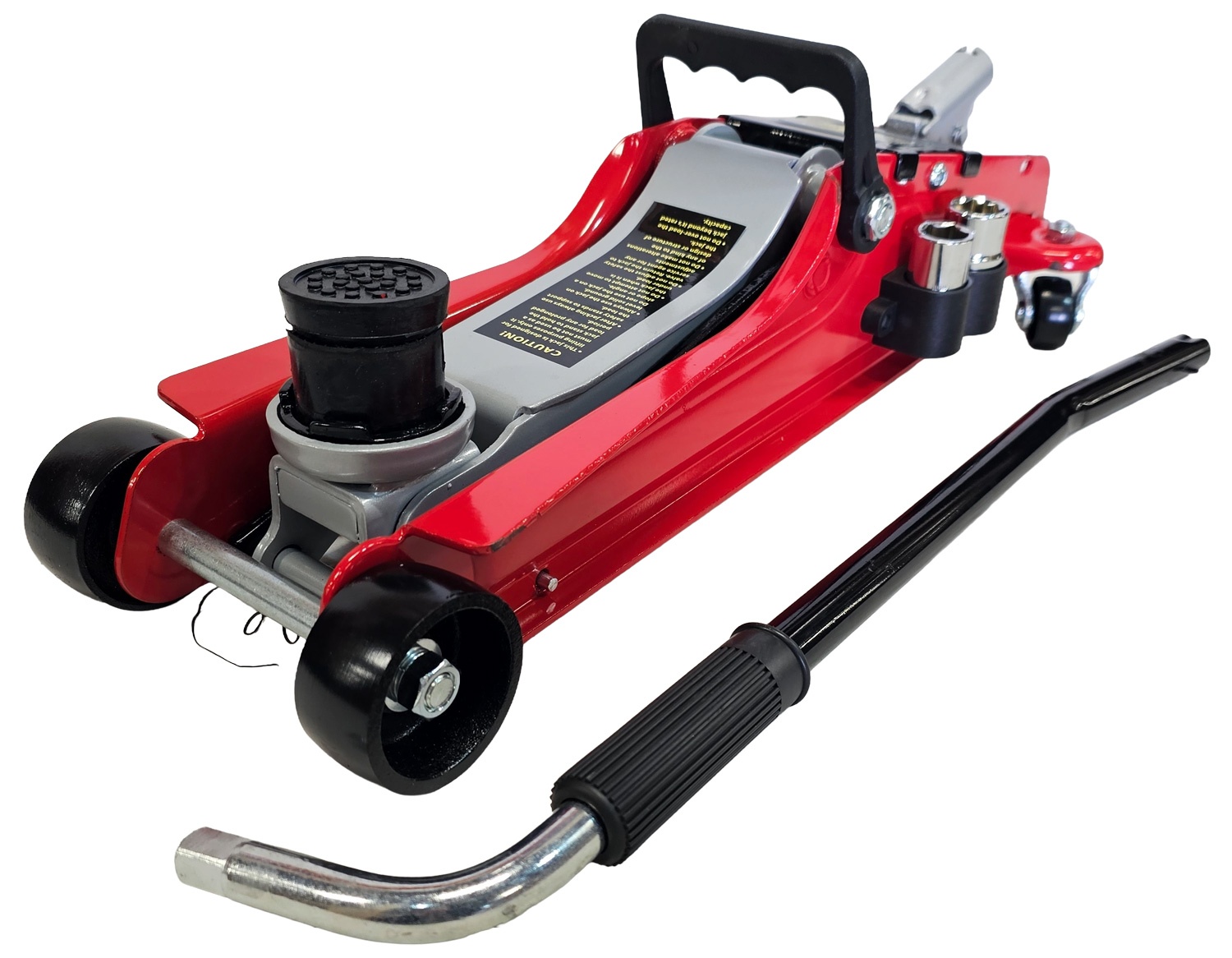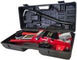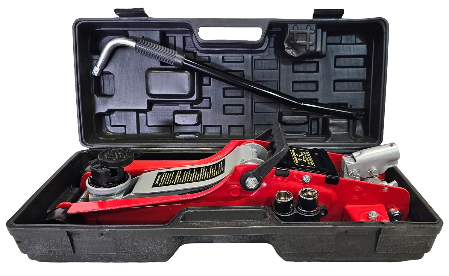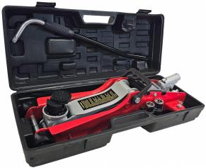 Hydraulic trolley jack 2.5t in a case with a handle, gloves, rubber and heads