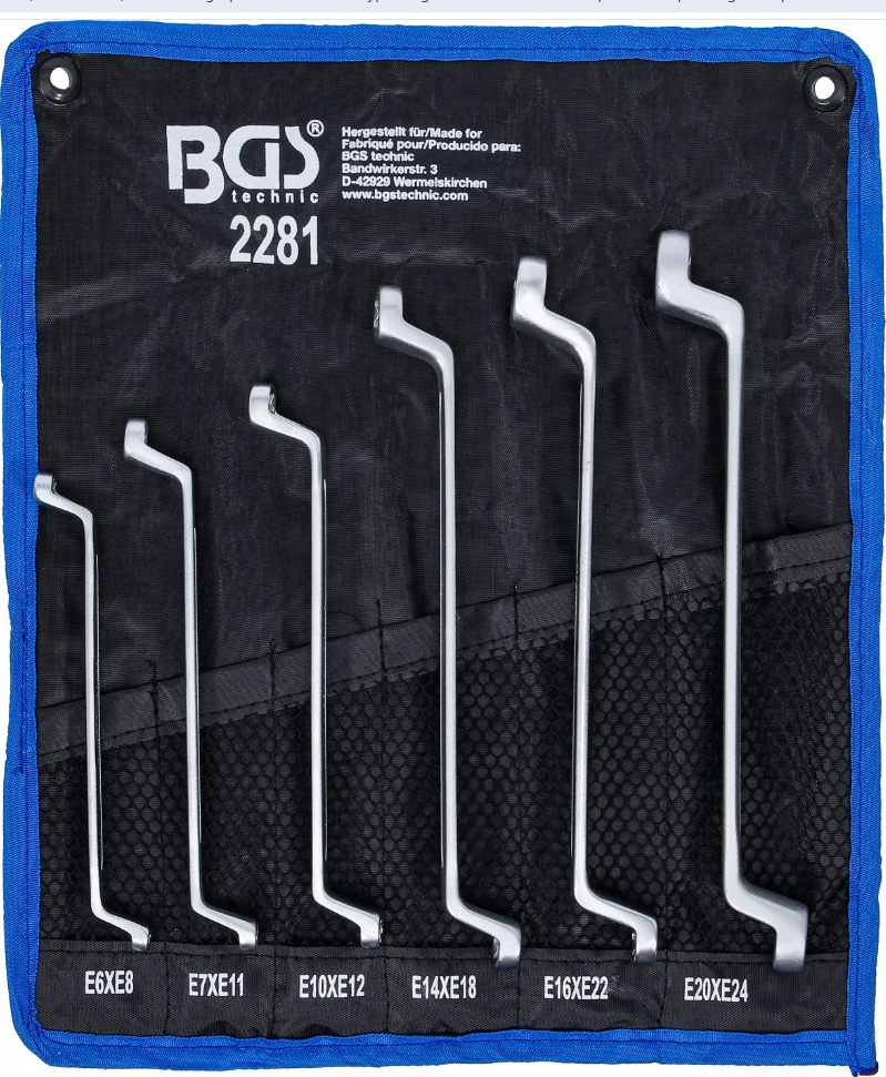 Dvigubo žiedo raktų rinkinys E-tipo | gilūs, lenkti | E6 - E24 | 6 vnt. (2281)