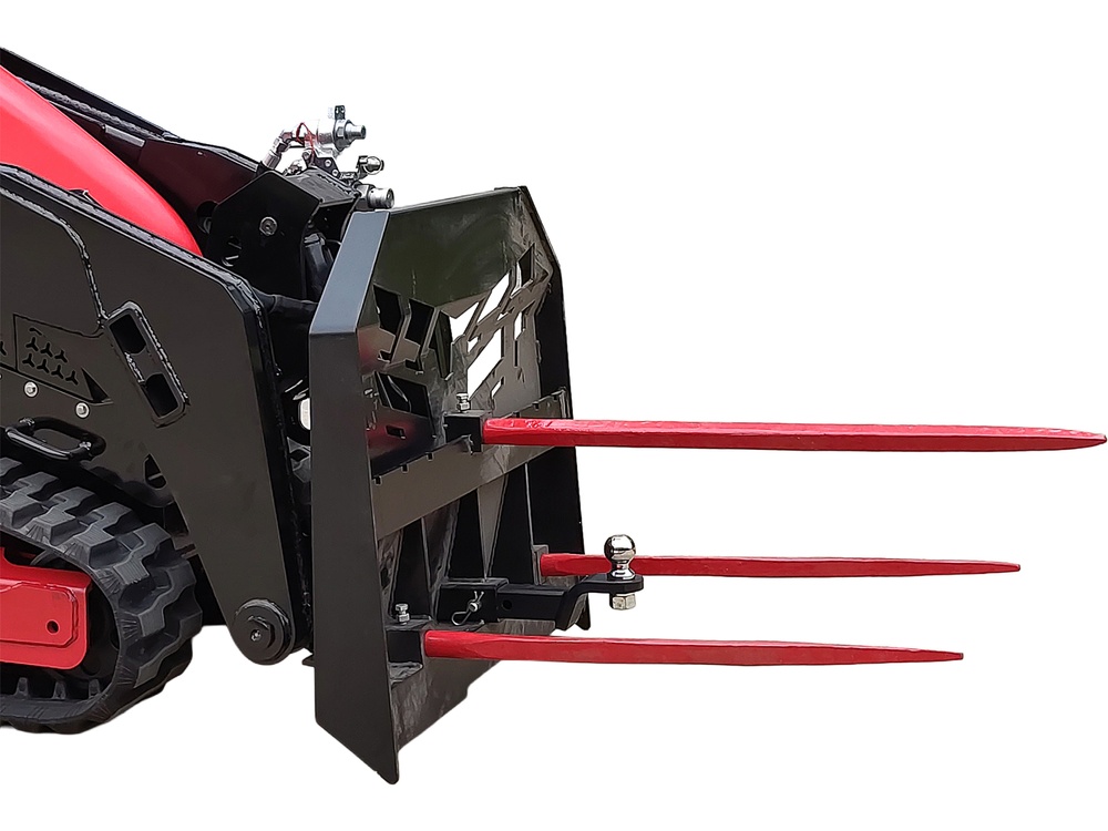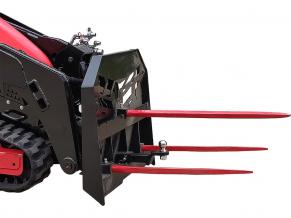 The robust steel construction and adjustable fork spacing ensure versatility of use and safe operation with various types of loads. The use of the 3-in-1 forks increases the functionality of the mini-loader and allows for performing multiple tasks without the need to change attachments.