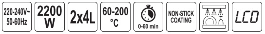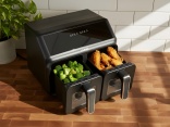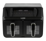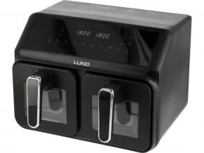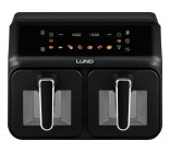 A multifunctional, oil-free fryer with two separate bowls is a practical device that will replace several kitchen appliances, allowing you to prepare healthy and quick meals for the whole family and guests. It has a non-stick coating, thanks to which a little fat or its complete elimination is enough to prepare tasty and aromatic dishes. It allows for defrosting, reheating, baking, frying, and grilling vegetables, meats, fish, as well as sweet and savory pastries.