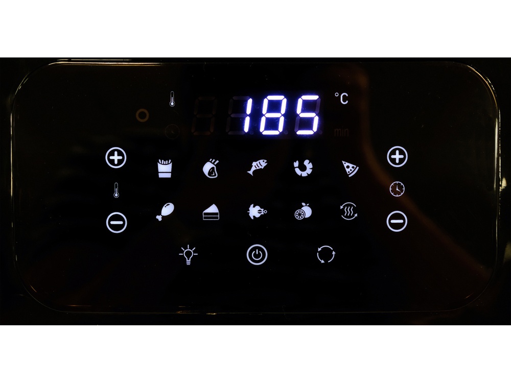 10 automatic programs: French fries, steaks, fish, shrimp, pizza, chicken leg, roasting, rotisserie chicken, drying, reheating