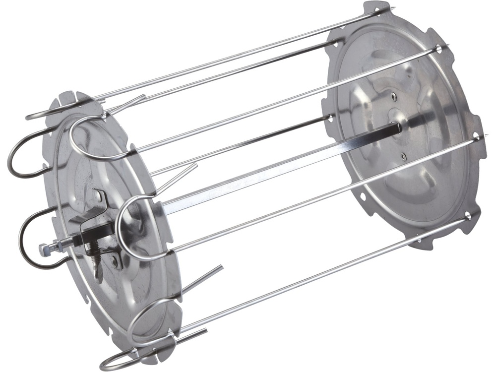 fat-free fryer, drip tray, tray x3, barbecue, rotating basket, a set of skewers for skewers