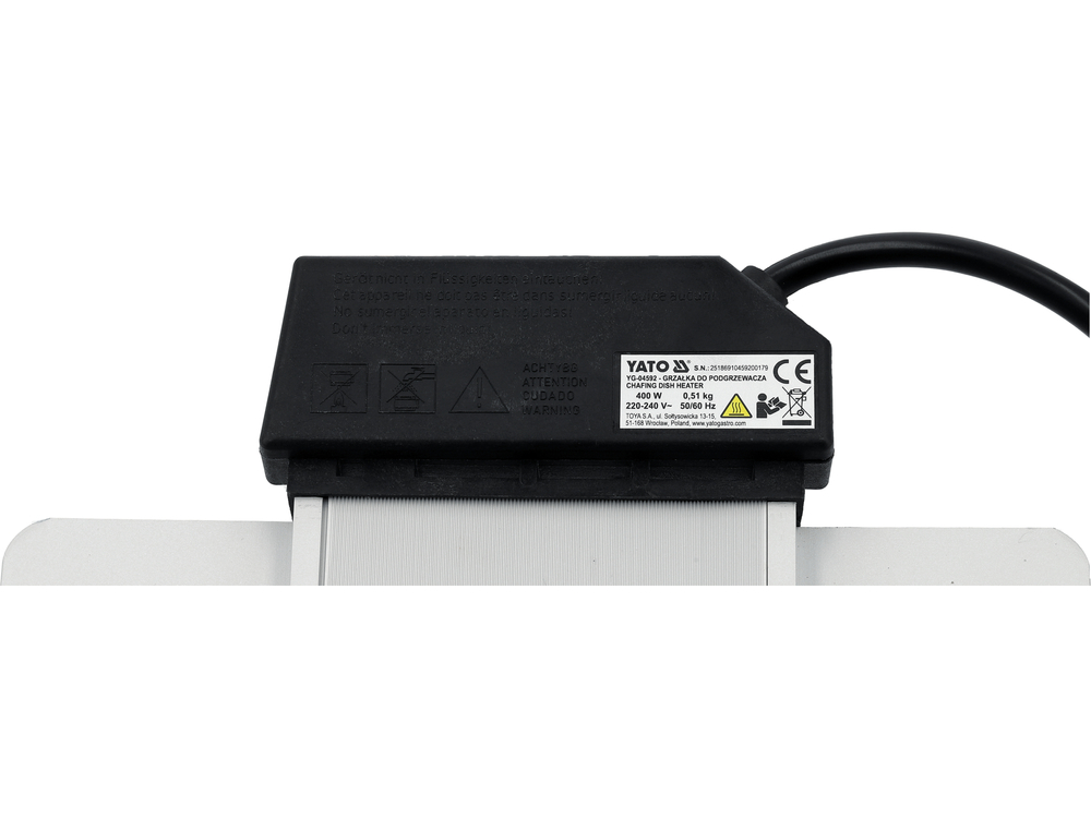 The heating element for food warmers is a reliable piece of equipment for professional gastronomy, designed to maintain the proper temperature of served dishes. Mounted underneath the container, it ensures even heat distribution without direct contact with the food, contributing to stable operation and safe use. The solid aluminium construction withstands intensive use in buffet, catering, and hotel environments.