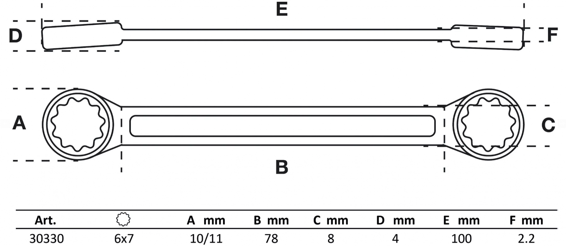 Double Ring Spanner, extra flat, 6 x 7 mm (30330B)