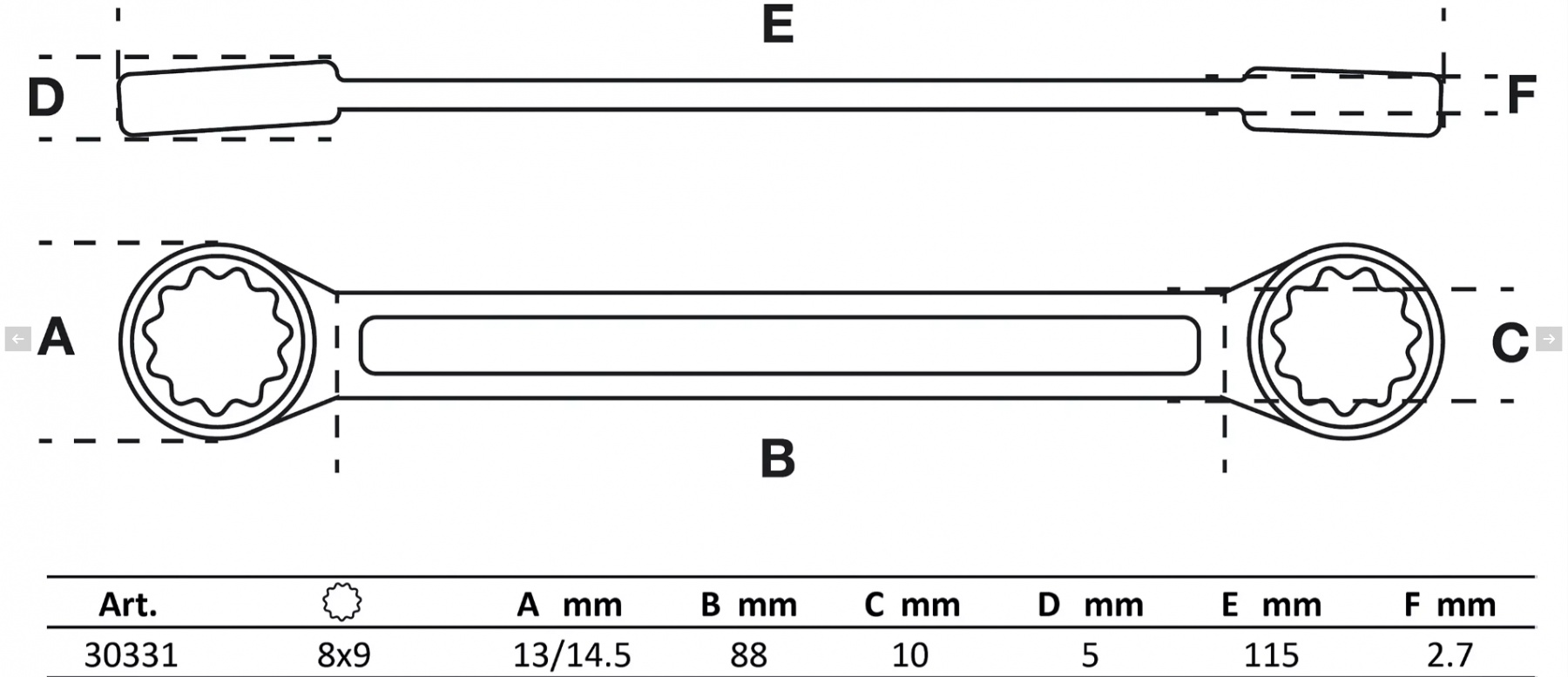 Double Ring Spanner, extra flat, 8 x 9 mm (30331)
