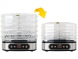 Capacity - 5 sieves will accommodate a large yet optimal amount of dried products. More floors, as a rule, means poorer drying quality. The maximum height between the sieves is as much as 4 cm! Turning the screens to the other side saves the space necessary to store the dryer.