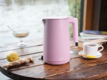 The LUND kettle is available in four colors: white, black, pink, and turquoise. Its simple form, with slightly rounded lines, matte coating and uniform color make it easy to integrate into classic or modern interiors.