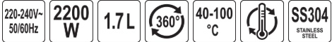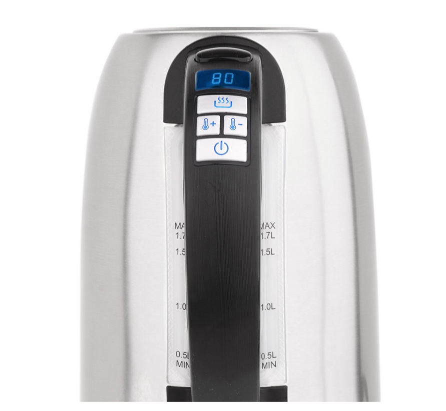 Electric kettle with the function of setting and maintaining the temperature of water from 40 to 100 degrees. Made of high-quality SUS304 stainless steel, whichóra provides resistance to corrosion and care chemicals. Additional features include a removable, mesh filter and a water level indicator with a scale.