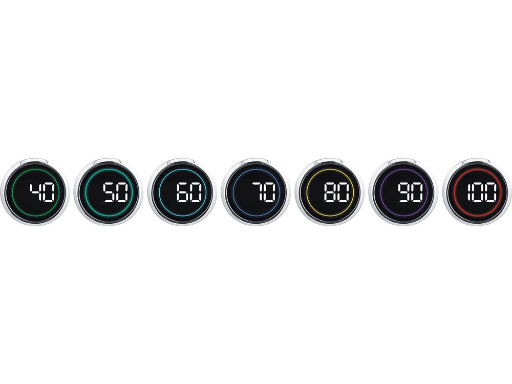 The digital LED display indicates the current water temperature while it's heating. A ring in different colors appears, corresponding to the degrees Celsius the water has reached. Once the water has heated to the selected temperature, a gentle audible signal sounds, and the LED ring turns white. The kettle automatically turns off and goes into standby mode after one minute.