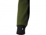 The 2-way stretch fabric on the sides, under the arms and partly on the underside of the sleeves reduces the discomfort known from traditional fleece almost to zero, e.g. when performing torso twists or when working with the arms above the head. It also provides better air circulation, so you sweat less, especially under the arms