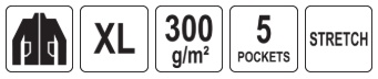 The main material is a durable polyester with a fleece-like structure that effectively keeps the body warm. The material of the inserts is stretch, breathable 2-way stretch fabric. It does not restrict movement and is pleasant on the skin.