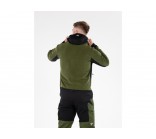 Fleece jacket with hood, functional zones and five pockets. It combines the characteristics of workwear with the comfort and freedom of movement known from outdoor clothing.