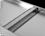 The table top at the back has an additional 100 mm high rim, thanks to which, after the table is placed against the wall, it prevents food residues from falling behind the table, significantly increasing work hygiene.