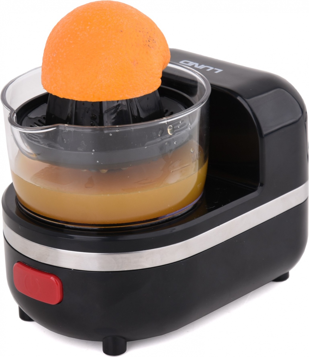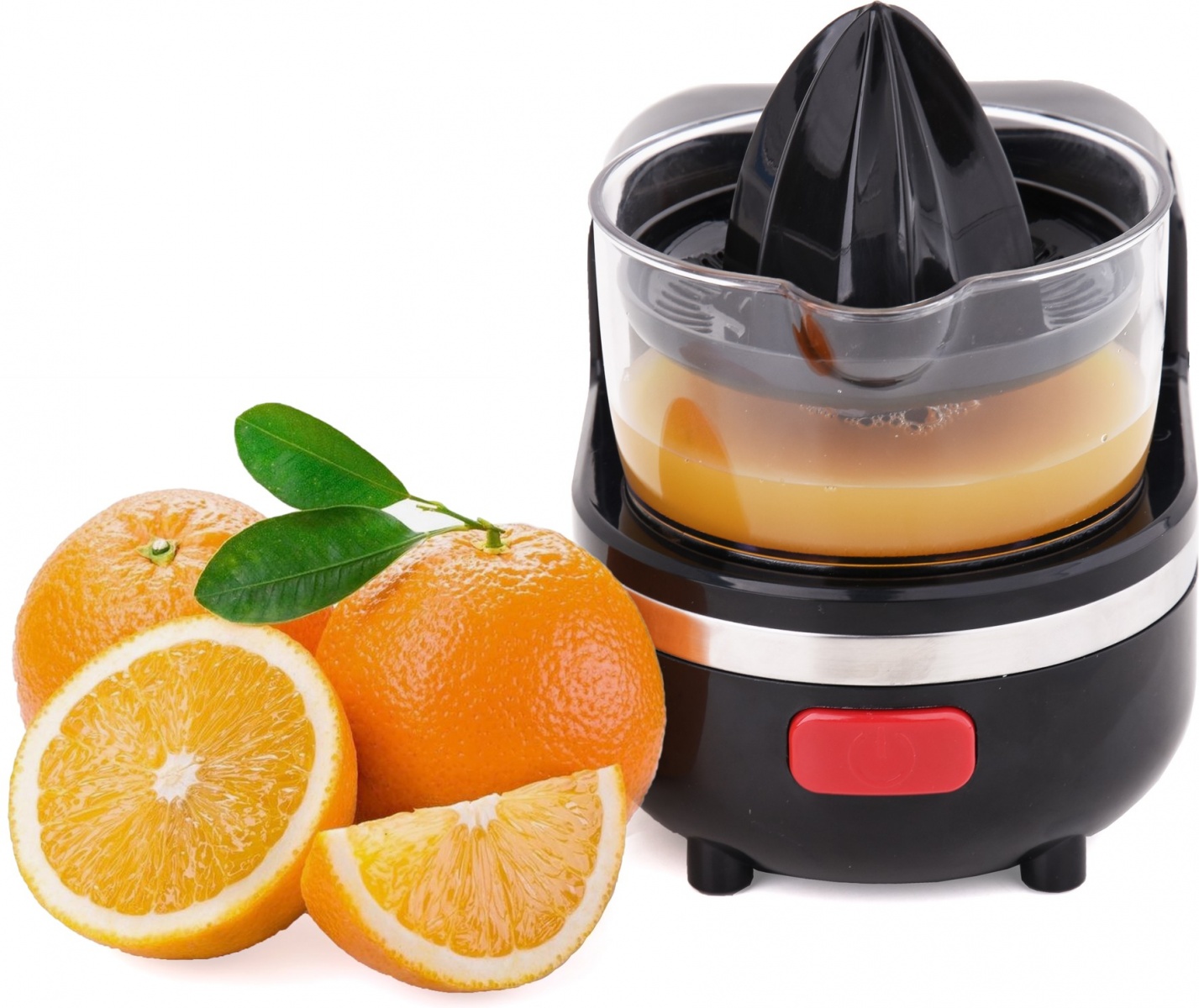JUICER - contoured juice squeezer with holes letting the juice into the container. Container with a spout for easier pouring of juice.