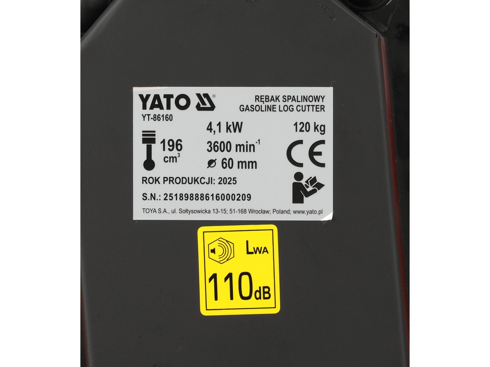 allows it to effi ciently process plant material up to 60 mm in diameter (YT-86160 model) or 80 mm in diameter (YT-86161 model),
