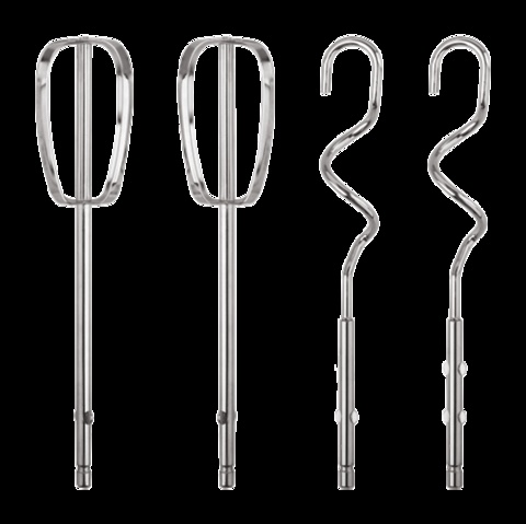 hand mixer, whisk x2, stirrer x2, base for the mixer and accessories