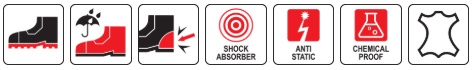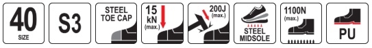 steel toe cap resistant to impact with energy up to 200 J and compression up to 15 kN