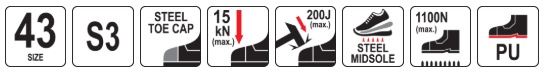 steel toe cap resistant to impact with energy up to 200 J and compression up to 15 kN
