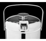 The double walls ensure a long-lasting low temperature. The lid tightly seals the container. Additionally, metal tongs for scooping ice are hidden in the lid. Additionally, there's a removable drip tray inside the tank.