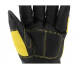 Reinforced, insulated work gloves. The gripping part is made of the latest generation of synthetic leather with a non-slip polyurethane pattern. The addition of elastane gives the material stretch, significantly improving comfort of use. They will be useful in construction, road works, for carrying dirty elements, as well as for performing tasks requiring high precision grip.