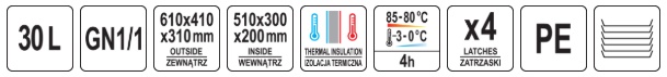 The heat insulated container is designed to store and transport GN1 / 1 containers.