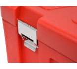 CAPACITY: 30L, FOR GN 1/1, RECTANGULAR, PE BODY AND LID, DOUBLE WALL, THERMAL ISOLATION BETWEEN WALLS, 4 S/S BUCKLES, DECOMPRESSION VALVE, 2 SIDE HANDLING GRIPS, MULTI- LAYER STACKABLE, RED COLOUR, INSIDE DIMENSION: 510x300x200MM, OUTSIDE DIMENSION: 610x410x310MM