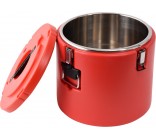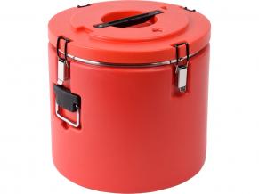 CAPACITY: 30L, INSIDE STAINLESS STEEL, OUTSIDE PE, DOUBLE WALL, THERMAL ISOLATION BETWEEN WALLS, PE LID, 4 S/S BUCKLES, 2 STEEL HANDLES, DECOMPRESSION VALVE, MULTI- LAYER STACKABLE, RED COLOUR, INSIDE DIMENSION: 350x320MM, OUTSIDE DIMENSION: 410x380MM