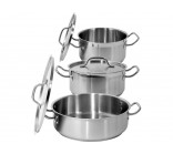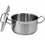 Professional low pot with lid, measuring 20x10.5 cm and with a capacity of 3.3 liters. The YATO Professional Kitchen Equipment pot is designed for professional use in the catering industry. It is perfect for preparing all types of dishes. It is made of high-quality 21/0 stainless steel, developed specifically for use in catering. The most important advantage of pots made of this type of steel is that heat conduction is up to 30% greater compared to standard pots made of 304 steel. They are also characterized by increased resistance to mechanical damage and the effects of organic acids and detergents. Therefore, they are dishwasher safe and resistant to intensive surface scrubbing. Importantly, pots made of 21/0 steel are free from harmful manganese and nickel. The special capsule base design distributes heat evenly across the entire bottom surface, increasing heat utilization and cooking efficiency. This translates directly into quality and comfort for the cook. This solution also reduces the risk of food burning. The ferromagnetic insert in the base allows YATO pots to be used on all types of stoves, including: - electric - induction - gas - ceramic. The pot's side walls and lid are made of thick steel, maintaining temperature longer than standard 304 stainless steel pots. YATO pots feature exceptionally solid, stay-cool handles that are firmly attached. This ensures safety and long-lasting durability. Designed for professional use in the catering industry, they are perfect for cooking all types of dishes.