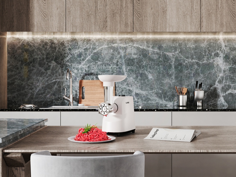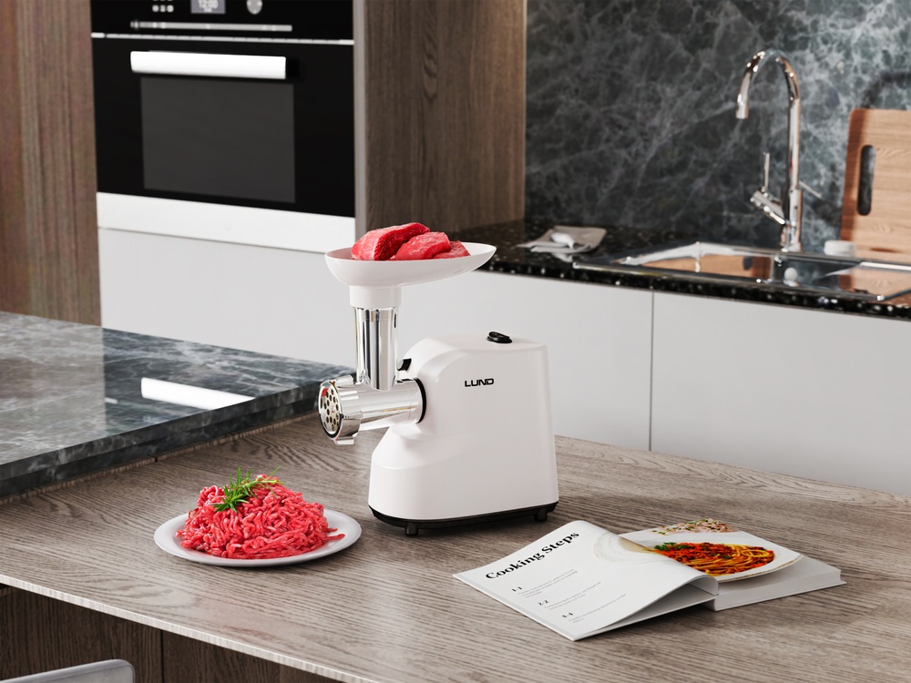 For safety during use, the grinder is equipped with a safety switch and a reverse function, which facilitates cleaning and unblocking of meat. The non-slip feet ensure a stable position during operation. With a weight of only 1.4 kg, the device is compact and convenient for storage.