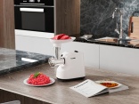 The 350 W meat grinder is a reliable device for people who appreciate the taste of homemade dishes prepared with fresh and proven ingredients. It allows for quick and even meat grinding, and thanks to additional attachments, it also allows for preparing your own sausages or dishes like kebbe.