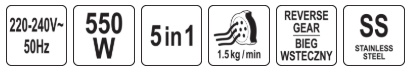 5 w 1 (mielenie mięsa, szatkowanie, wyciskanie soku, napełnianie kiełbas, przygotowanie kebbe)