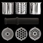 meat grinder, tray, edge, grating and shredding insert x3, grinding disc x3 (diameter 3 mm, 5 mm, 7 mm), sausage filling attachment, kebbe attachment x2,