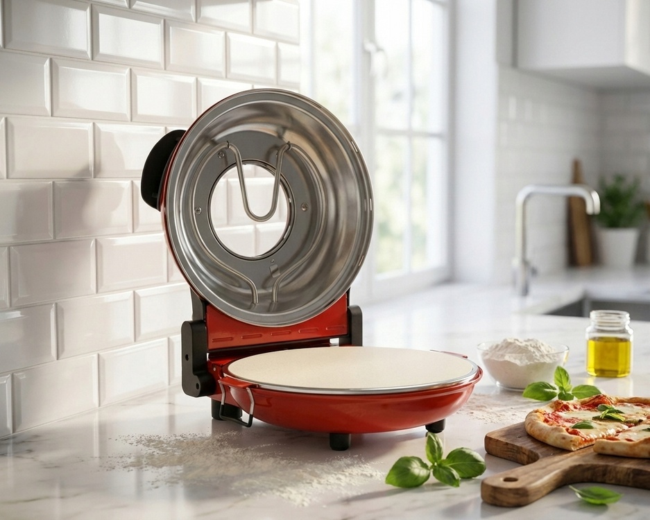 The oven allows you to prepare delicious pizzas, the taste and quality of which can be compared to those prepared in professional restaurant ovens. Unattainable in traditional ovensa temperature of 400ºC makes it possible to prepare pizzas in minutes. A window in the lid makes it easy to check the level of browning. Adjustable temperature and 2 types of plates will allow you to cook other foods – cakes, meats or toasts