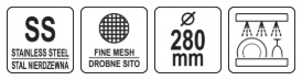 The Yato sifter has a diameter of 280 mm and a depth of 70 mm. The sieve has a fine mesh size of 1 mm.