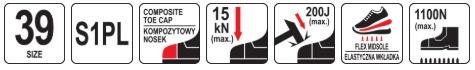 4 mm thick plastic anti-penetration insole that protects the foot from piercing by sharp objects with a pressure of up to 1100 N