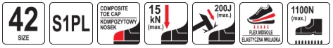 4 mm thick plastic anti-penetration insole that protects the foot from piercing by sharp objects with a pressure of up to 1100 N