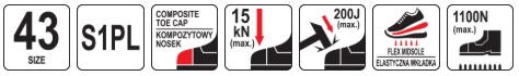 4 mm thick plastic anti-penetration insole that protects the foot from piercing by sharp objects with a pressure of up to 1100 N