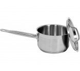 Professional saucepan with lid, measuring 16x9.5 cm and with a capacity of 1.9 l. The YATO Professional Kitchen Equipment saucepan is designed for professional use in the catering industry. It is perfect for preparing all kinds of stews. It is made of high-quality 21/0 stainless steel, developed specifically for use in catering. The most important advantage of saucepans made of this type of steel is that heat conduction is up to 30% greater compared to standard saucepans made of 304 steel. They are also characterized by increased resistance to mechanical damage and the effects of organic acids and detergents. Therefore, they are dishwasher safe and resistant to intensive scrubbing. Importantly, saucepans made of 21/0 steel do not contain harmful manganese and nickel. The special design of the capsule bottom distributes heat evenly across the entire bottom surface, increasing heat utilization and cooking efficiency. This directly translates into quality and comfort for the cook. This solution also reduces the risk of food burning. The ferromagnetic insert in the bottom allows YATO pots to be used on all types of stoves, including: - electric - induction - gas - ceramic. The pot's side walls and lid are made of thick steel, retaining heat longer than standard 304 stainless steel pots. YATO pots feature exceptionally robust, stay-cool, and securely attached handles. This ensures safety and long-term durability. Designed for professional use in the catering industry, they are perfect for cooking all types of dishes.