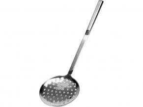 This slotted spoon, with a diameter of 110 mm and a length of 370 mm, is particularly useful in hotels, restaurants, and buffets.