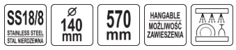 The 140mm diameter working section with 4mm holes is aesthetically finished with a chrome-plated surface. This makes it very easy to clean and dishwasher safe.