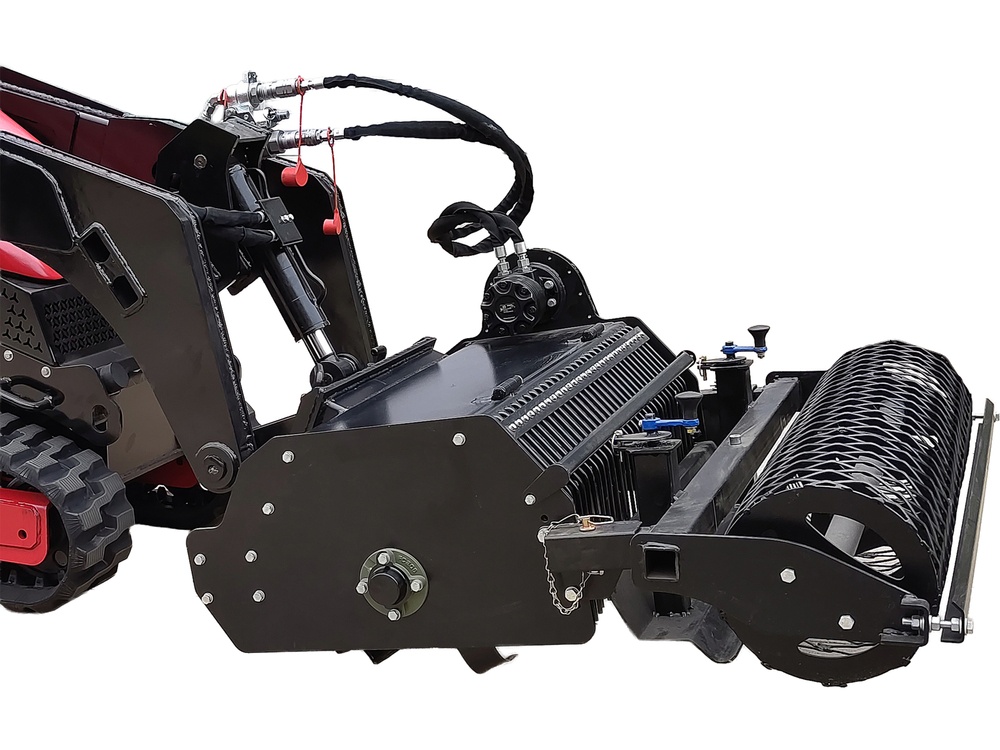 Its robust construction and wide working area enable effective preparation of the ground for lawns, gardens, plantings, and reclamation work. The hydraulic tiller significantly increases the pace of earthworks and improves the quality of soil preparation.